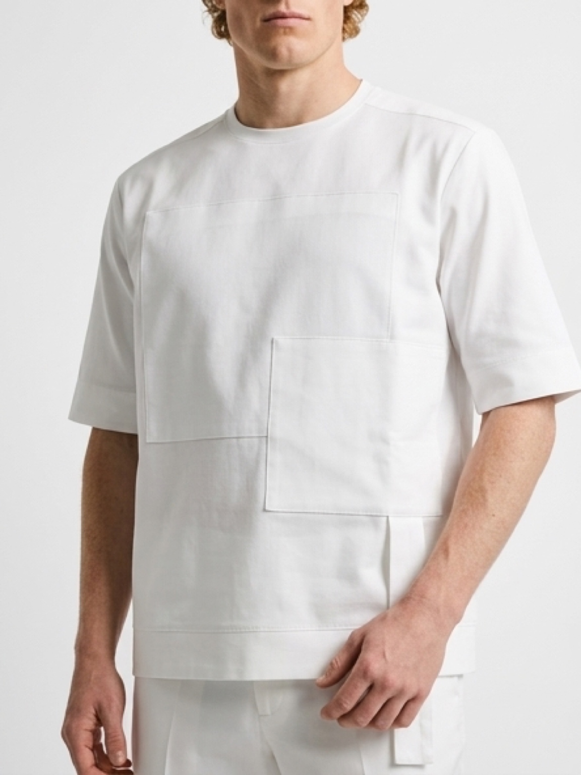 Redefining the standards of modern executive leisure. Our merges clinical precision with a progressive aesthetic. The monochromatic palette radiates a high-status, "Old Money" vibe, while the asymmetrical patch-work and clean crew neckline reflect a forward-thinking approach to style. Meticulously tailored with a modern oversized 3/4 sleeve and crisp straight-leg trousers, this two-piece set is designed for the leader who commands attention through sophisticated restraint and superior craftsmanship.