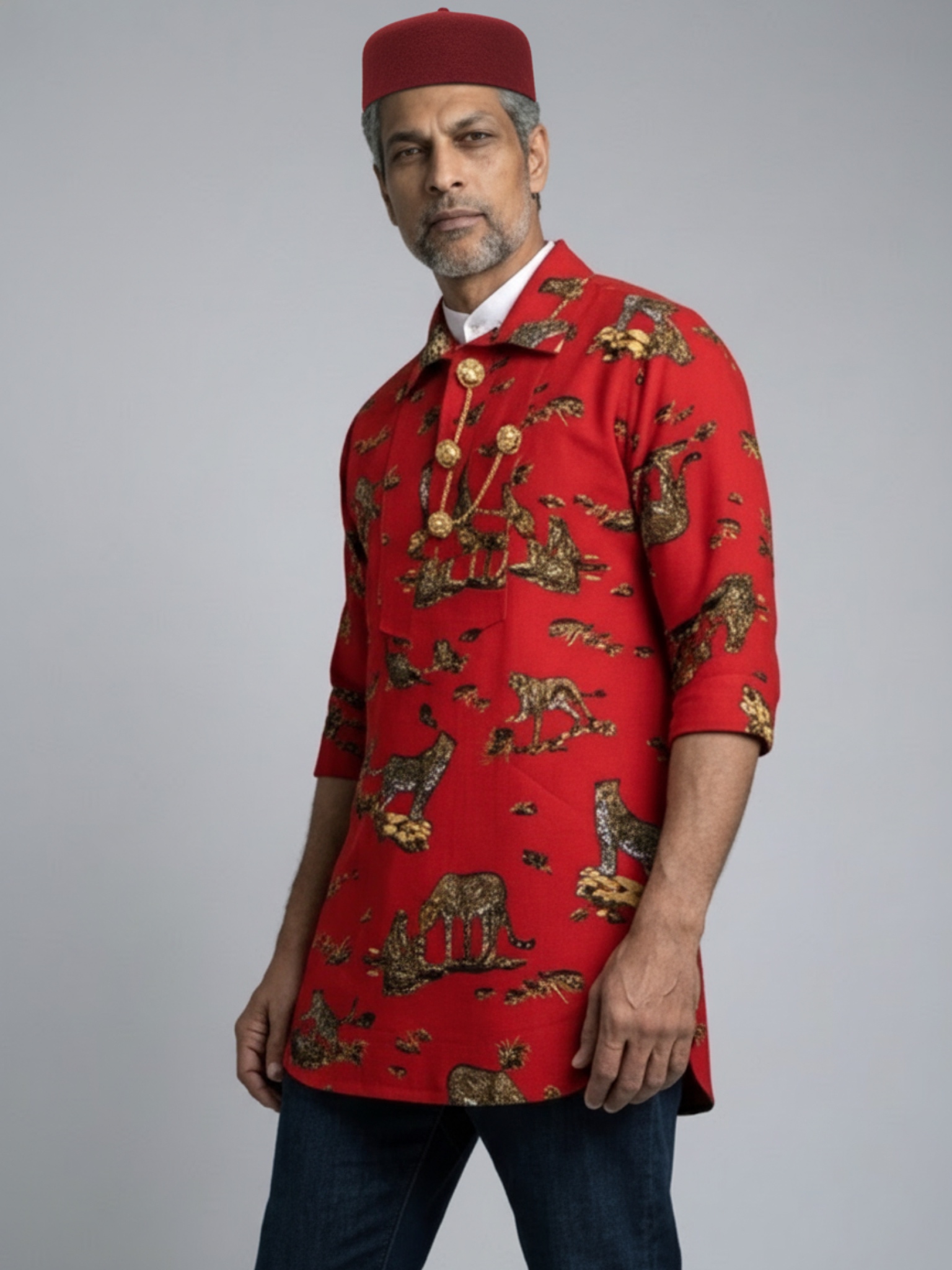 Red Leopard Isiagu Tunic- Odogwu Regal