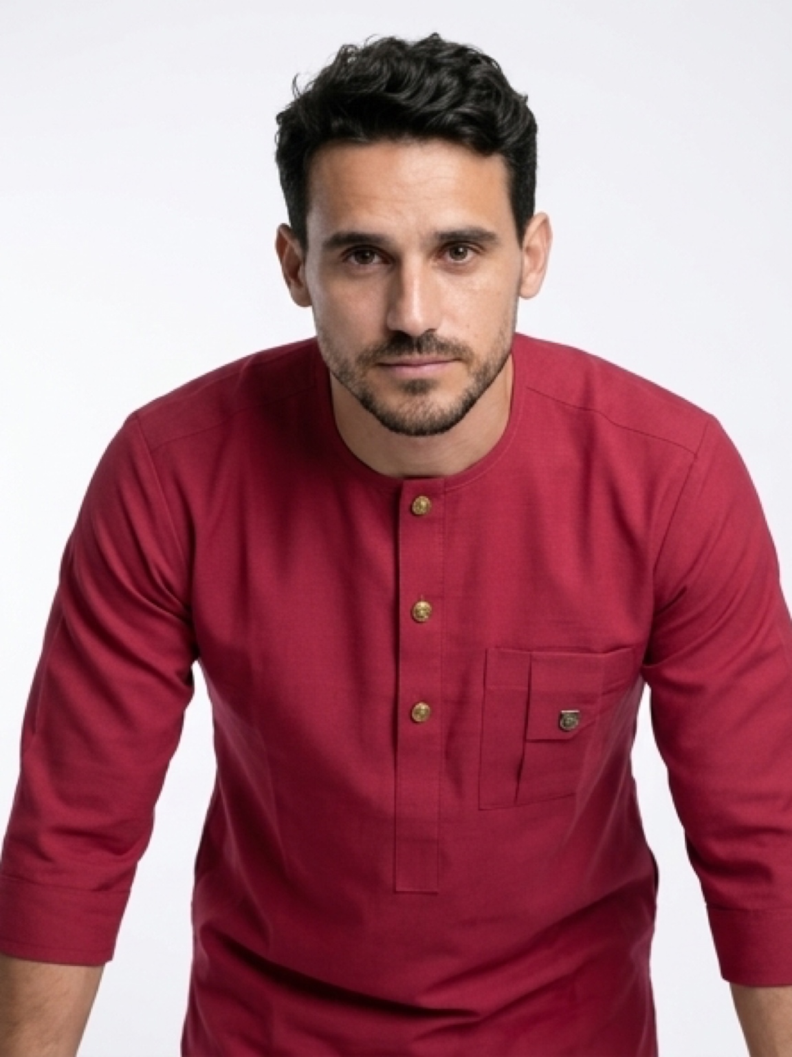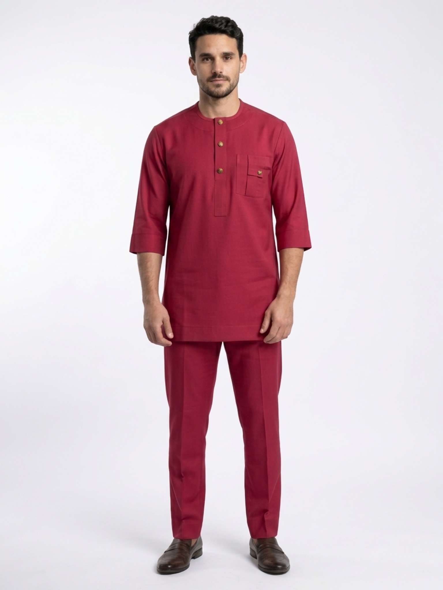 Command the room with precision. The Crimson Linear Signature Senator is designed for the leader who values bold expression and meticulous detail. Set in a deep, high-impact berry red, this piece features subtle tonal pinstripes and interlocking diamond embroidery that flows vertically down the frame. The traditional silhouette is elevated by high-contrast golden hardware on the placket and chest pocket, adding a flash of "Old Money" luxury to a contemporary cut. Meticulously tailored for a sharp, streamlined fit, this set is the definitive choice for high-stakes boardrooms and exclusive evening events.