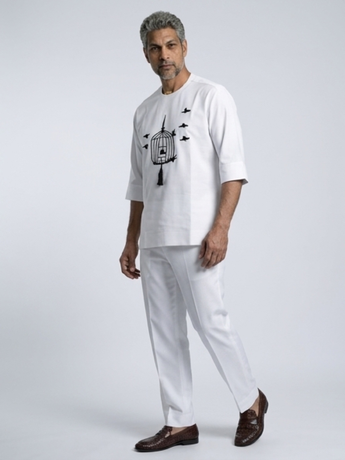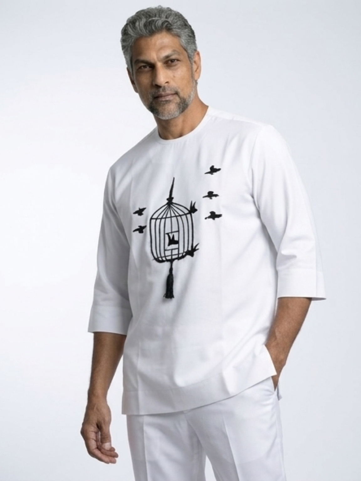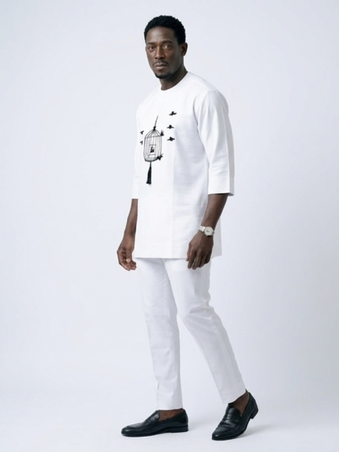 Elevate the everyday with poetic precision. Our Monochrome Flight Kaftan merges contemporary graphic design with a sharp, "Old Money" silhouette. The stark black-on-white embroidery creates a bold visual impact that radiates confidence and creativity. Meticulously tailored for a clean, streamlined fit, this two-piece set offers a versatile profile that stands out in a sea of traditional patterns. For the leader who moves through the world with grace and a unique vision, this set provides a look that is as memorable as it is refined.