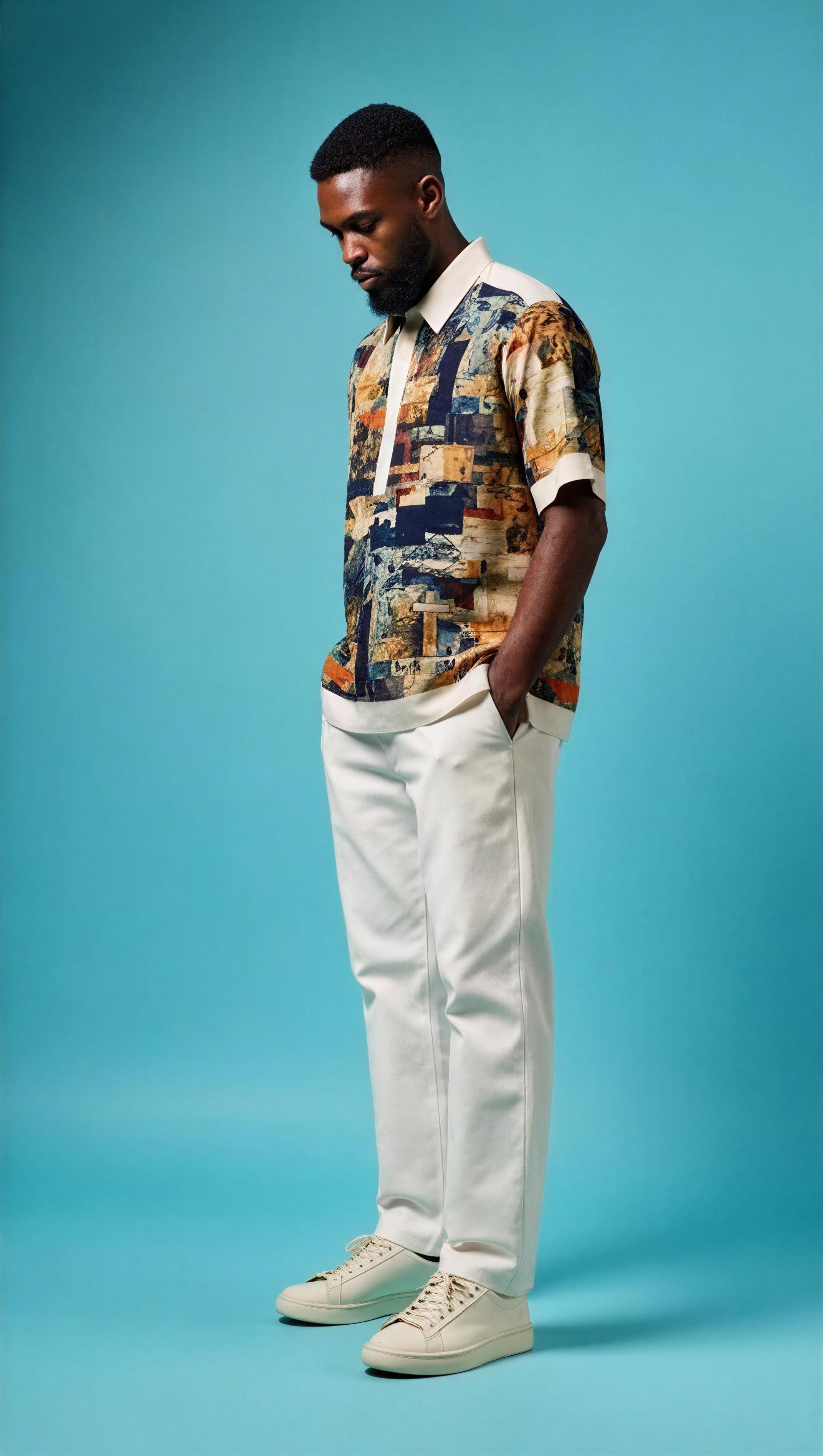 Strength meets precision. The TITAN is designed for the leader who operates with a solid, unyielding presence. This ensemble features a deep charcoal grey base, elevated by a unique V-shaped leather-textured panel on the chest. The panel is accented by three bold, industrial-grade metallic buttons that serve as a powerful visual anchor. Tailored for a sharp, streamlined fit with precision-cut 3/4 sleeves, this set is the definitive choice for executive boardrooms, technology summits, and high-end evening networking.